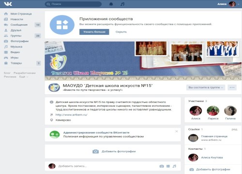 У ДЕТСКОЙ ШКОЛЫ ИСКУССТВ №15 ПОЯВИЛАСЬ СВОЯ ГРУППА В КОНТАКТЕ